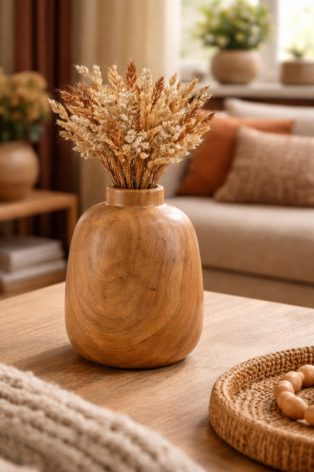 🪵 Breng een warme, natuurlijke sfeer in huis met deze compacte keramieken vaas.