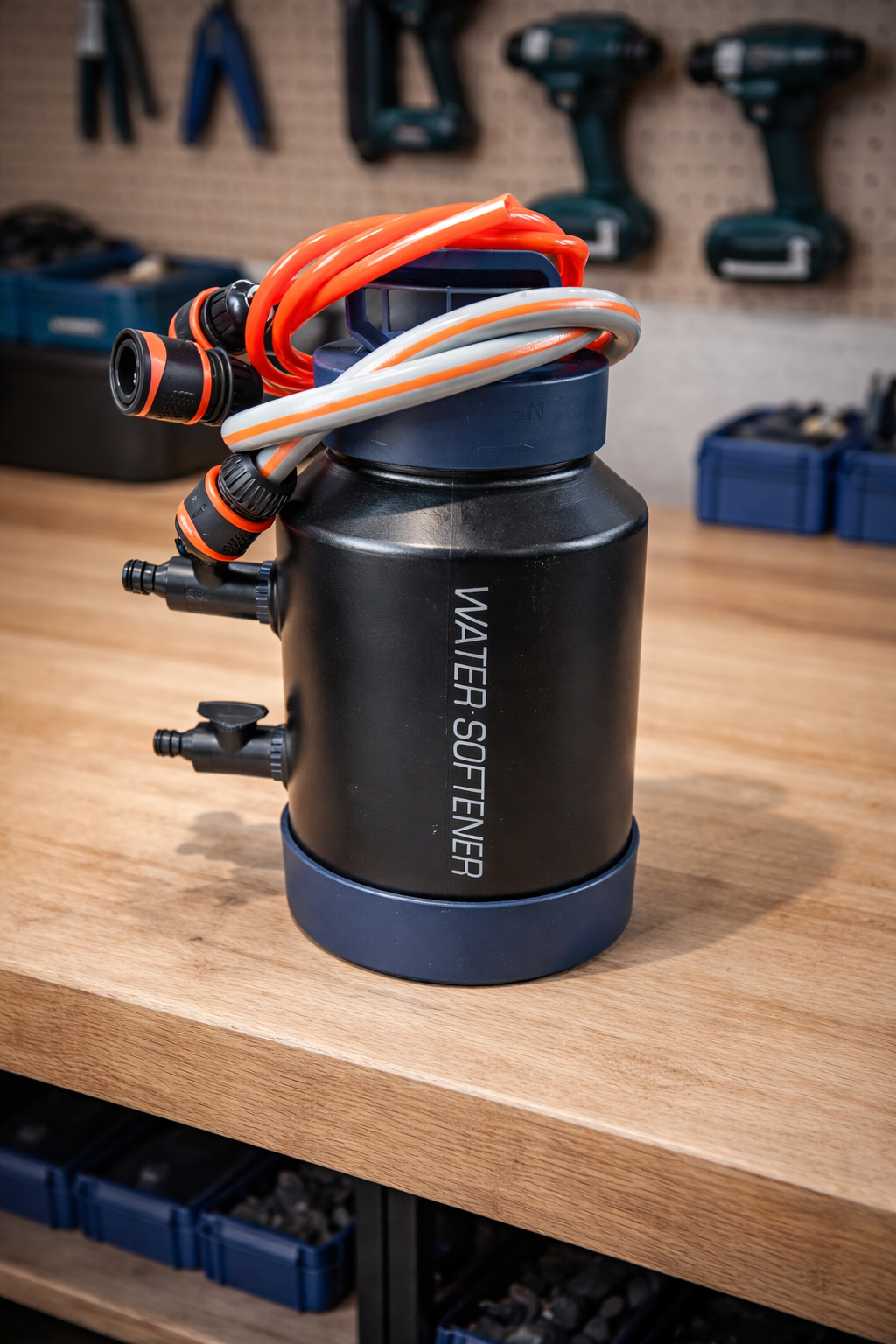 Dankzij de royale inhoud kun je langere tijd ongestoord doorgaan. Wanneer onderhoud nodig is, kan het systeem opnieuw worden geactiveerd met behulp van zout, zodat je steeds weer beschikt over kalkvrij water voor uiteenlopende schoonmaakklussen rondom huis en werkplaats.