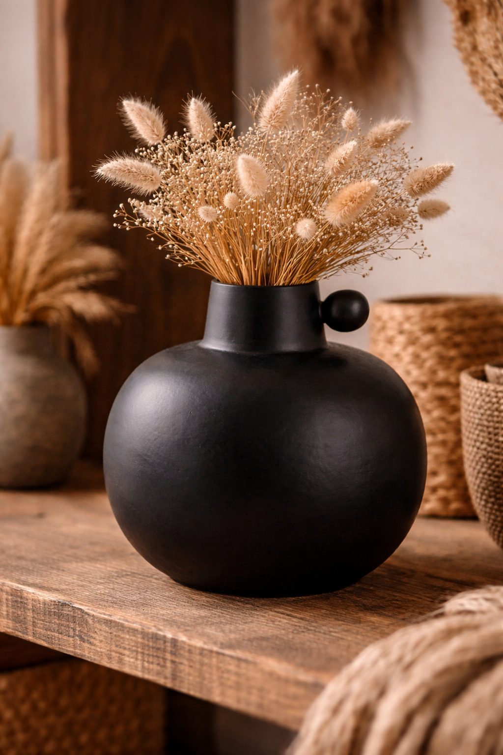 ✨ WOOOD vaas Kita – Stoer mat zwart design